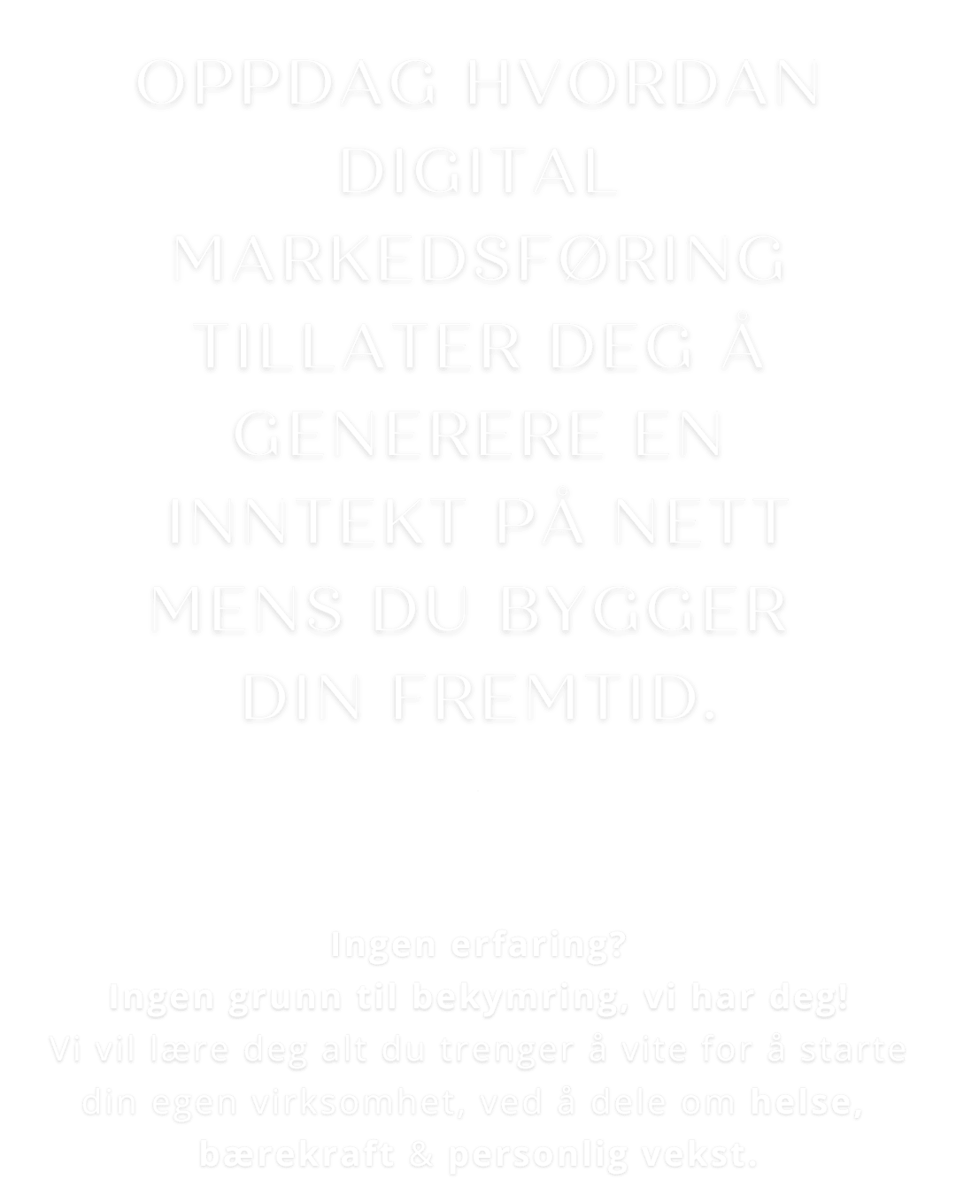 Jeg er her for å inspirere deg og hjelpe deg med å skape et liv med mer frihet gjennom å jobbe på nett.